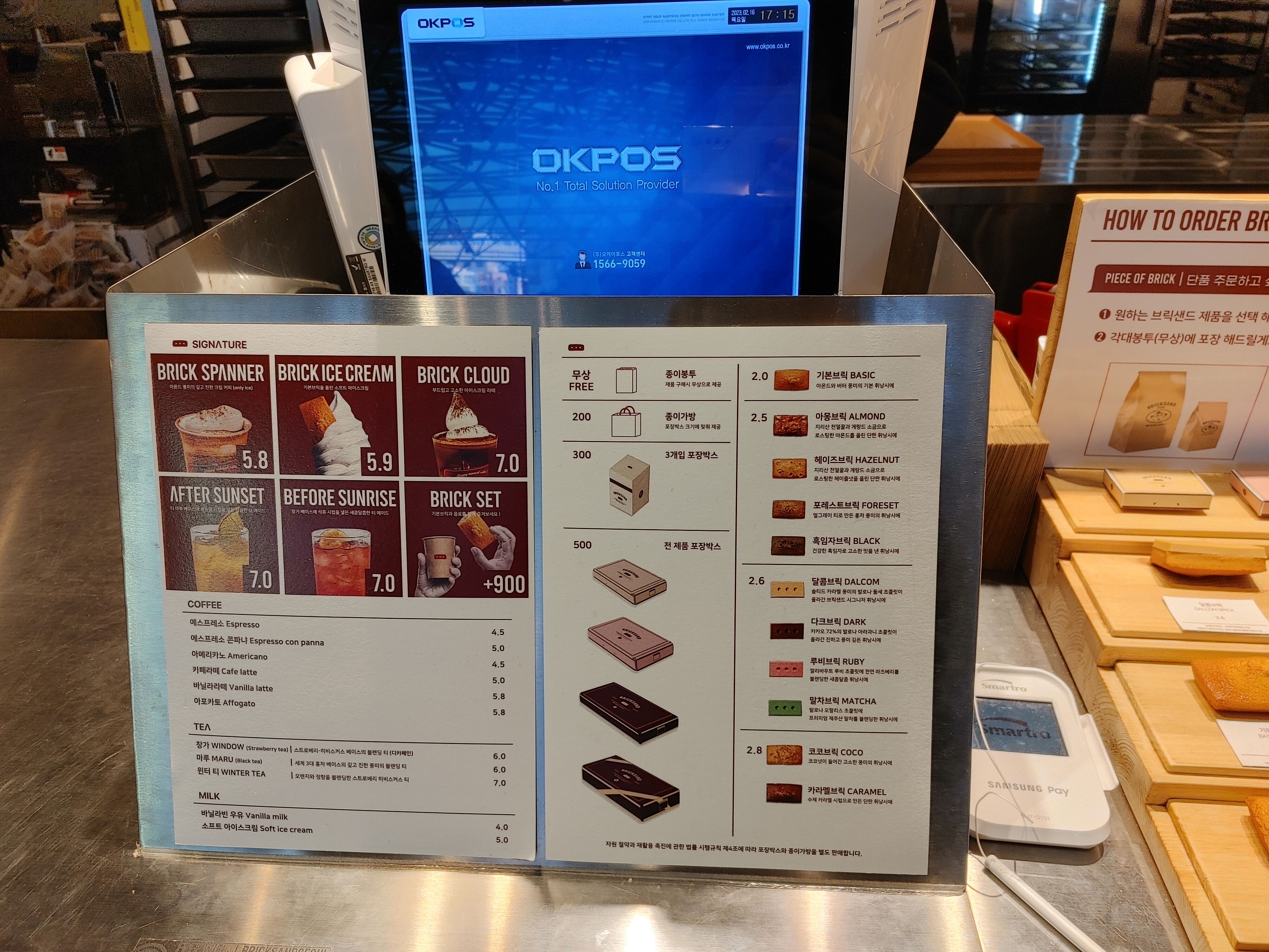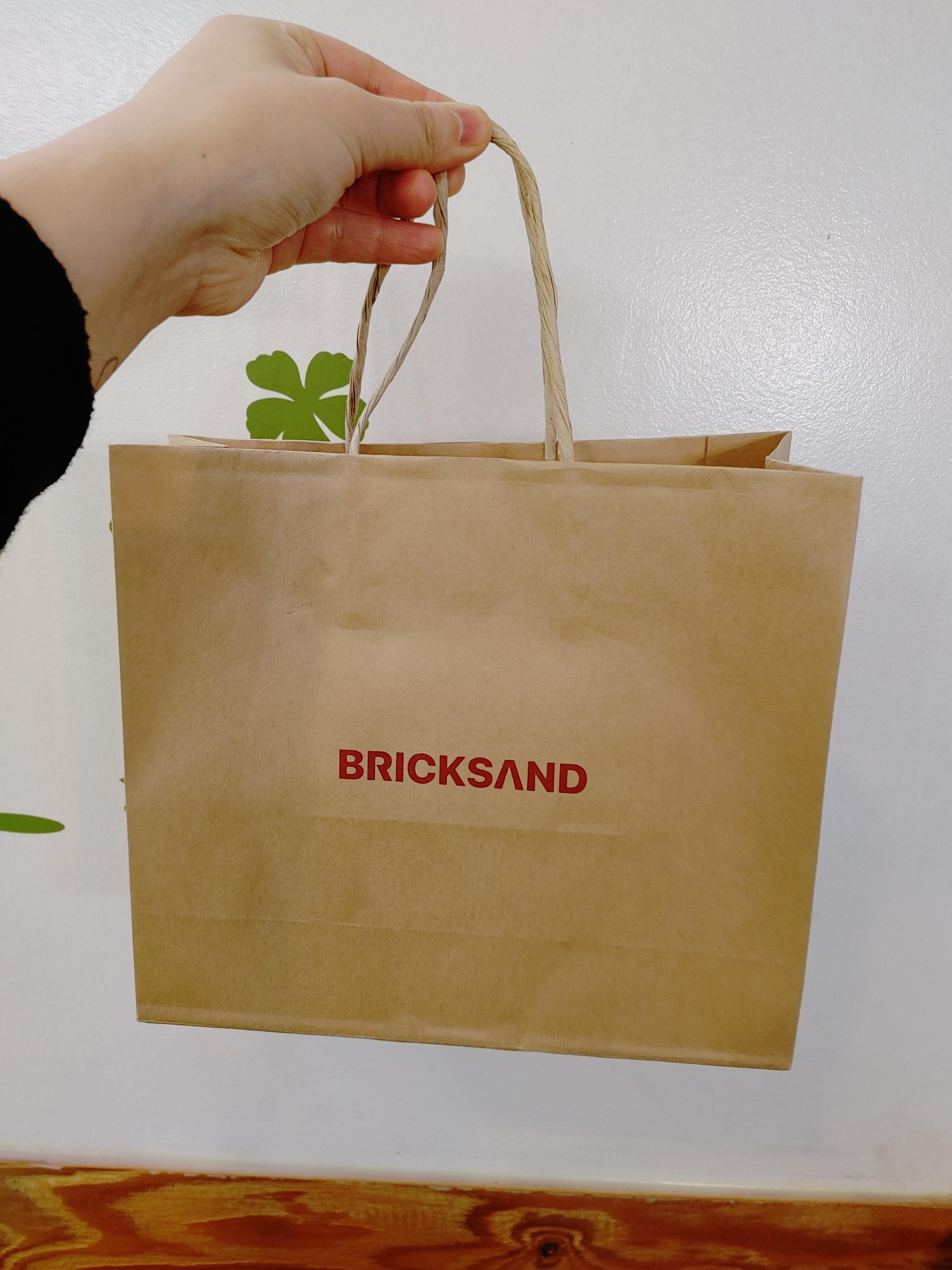 손님이 많아서 조금 기다려야 했다. 진동벨이 울려서 받으러 갔더니 주문제품 확인 후 박스 안에 담아주셨다. 나는 기본브릭, 말차브릭, 다크브릭, 포레스틱브릭, 아몽브릭을 포장했다.