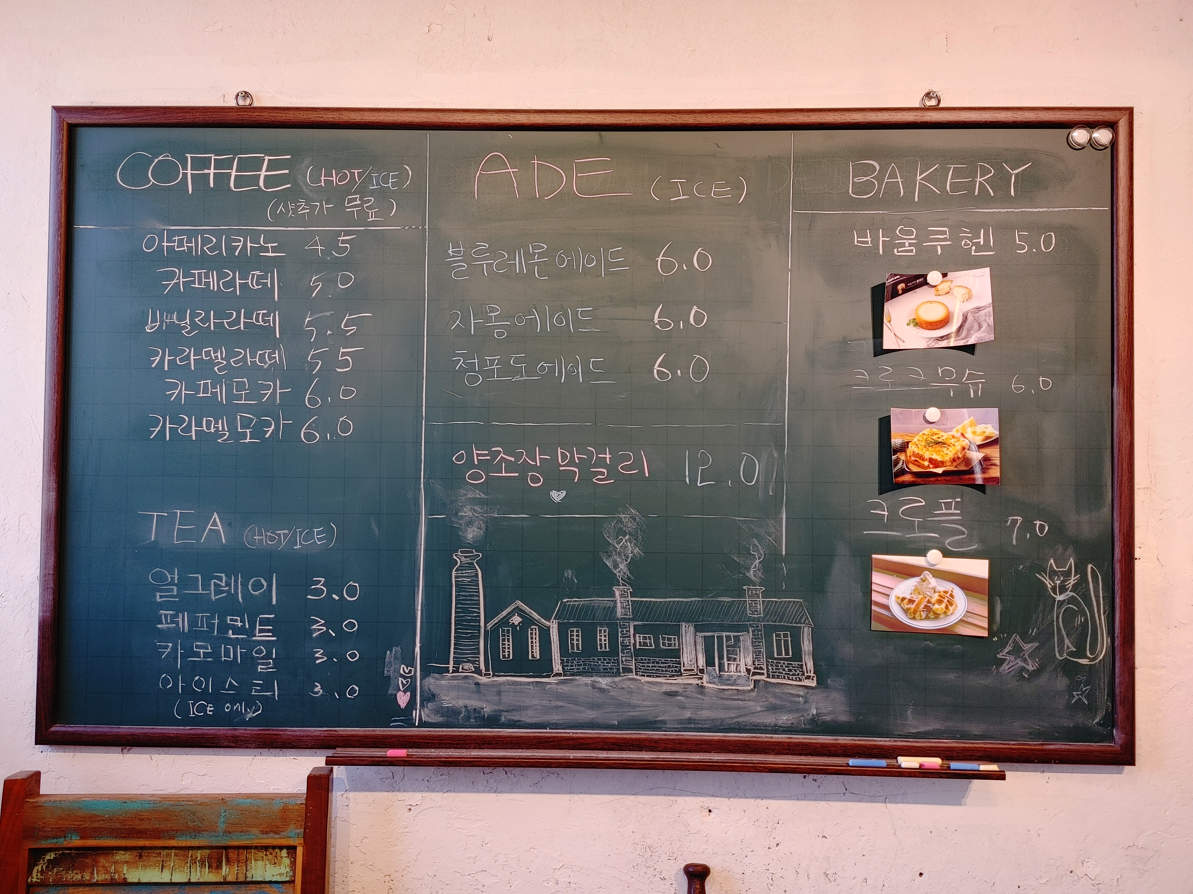 커피, 티, 에이드, 간단한 디저트류를 판매한다. 양조장막걸리라는 메뉴가 있길래 신기해서 사장님께 물어봤는데 현재는 판매하지 않는다고 한다.