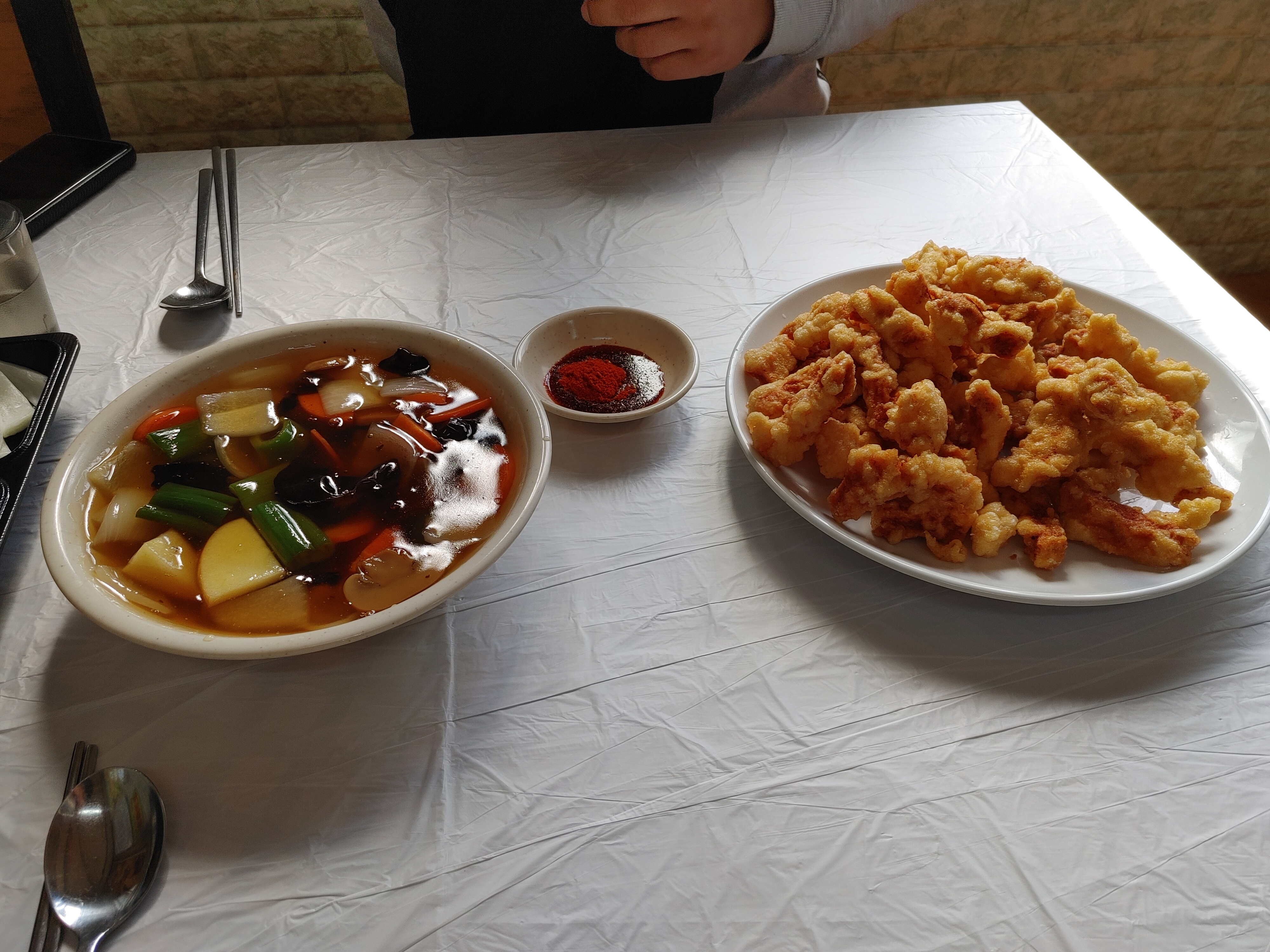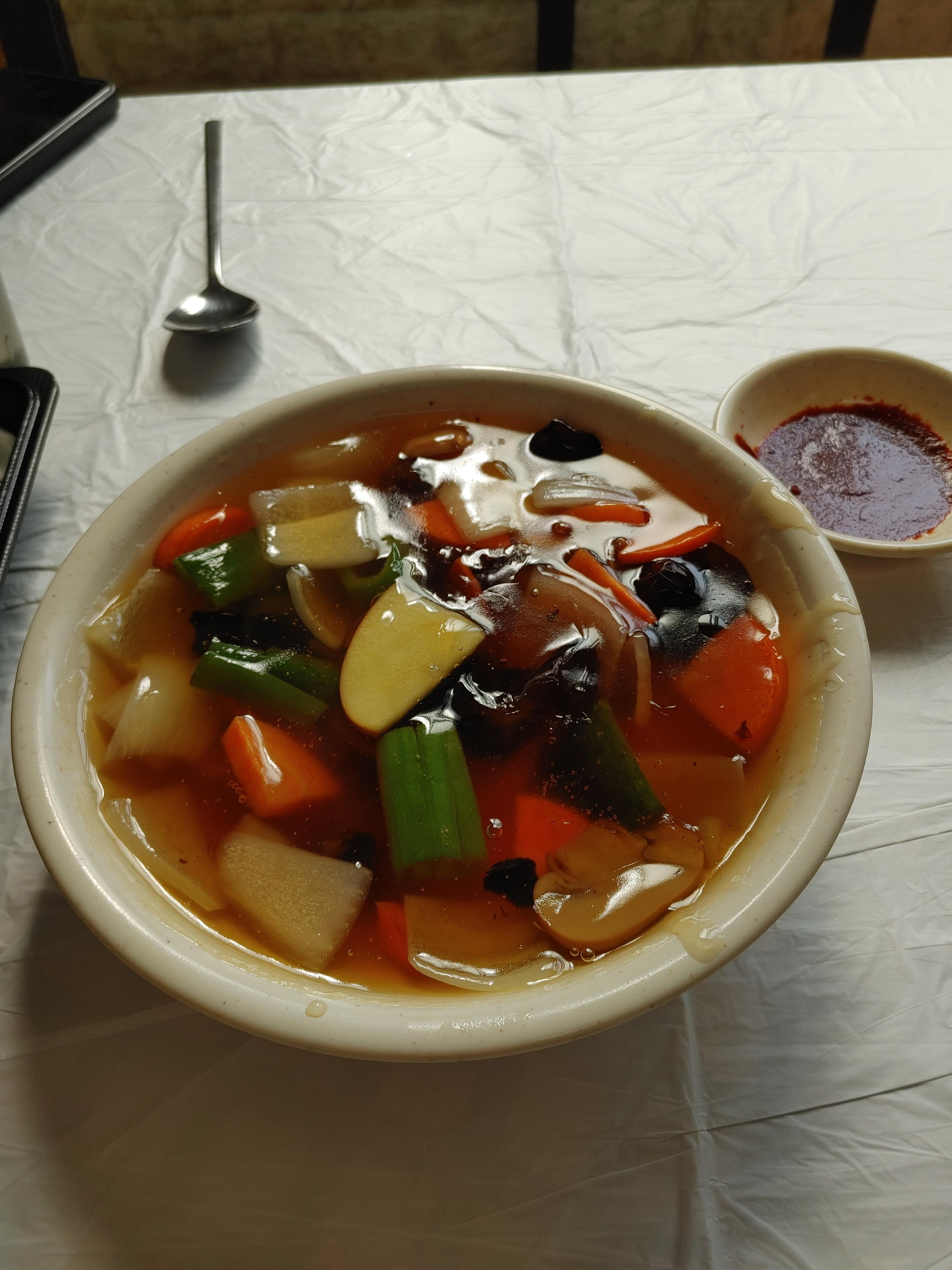 국물은 진하고 맛있었다. 맵긴 했는데 인위적인 매운맛은 아니어서 계속 당겼다. 짬뽕 맛집이라더니 정말 맛있었다.