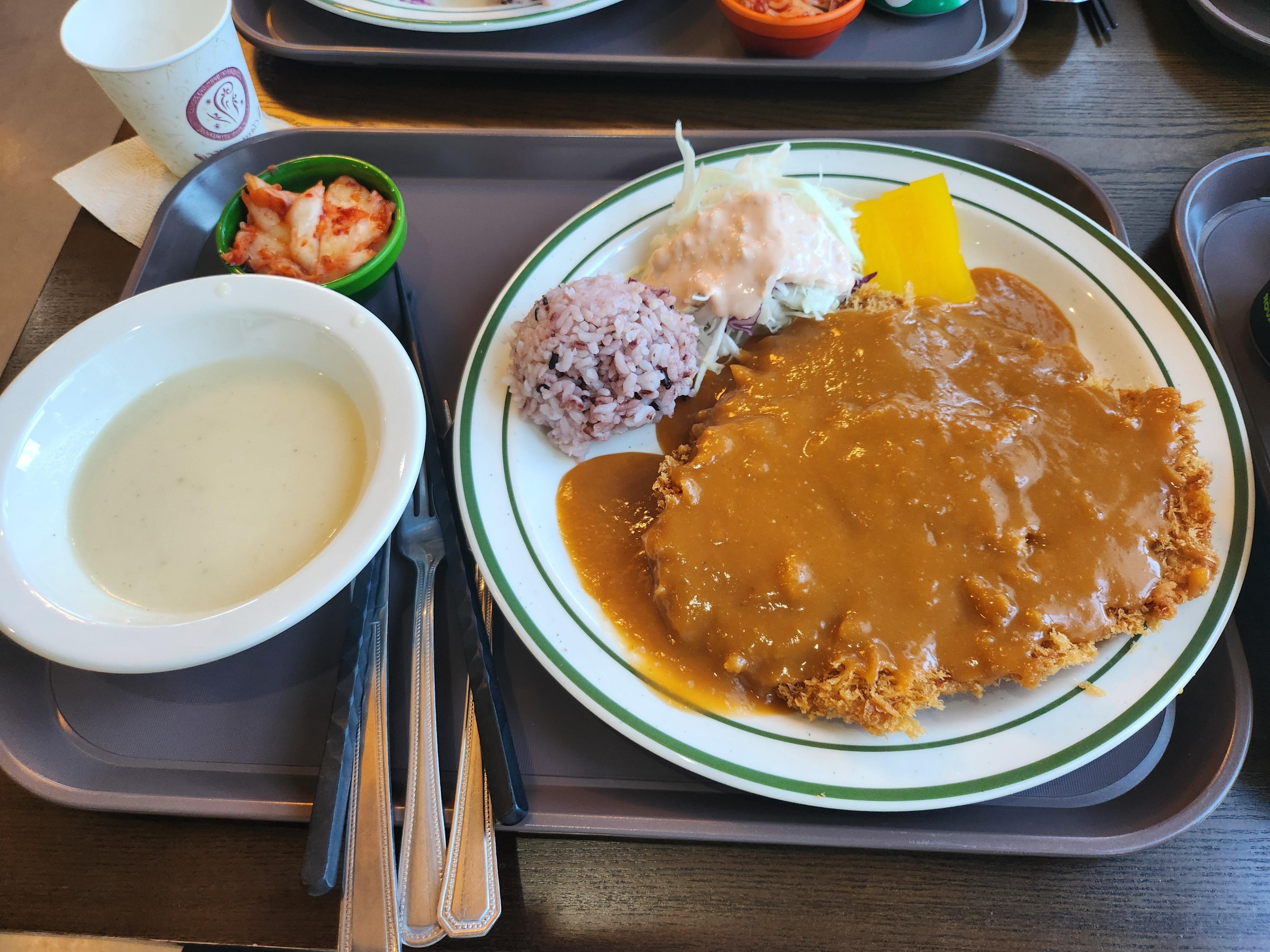 내포 돈까스 맛집 중 하나인 '엠브로돈까스'. 경양식 돈까스집인데 밥과 수프가 무한리필된다. 대표메뉴 엠브로 돈까스의 가격은 8,900원이다. 도톰한 돈까스에 소스가 듬뿍 얹어서 나온다. 고기가 부드럽고 맛있어서 우리 할머니도 정말 맛있게 드신다.