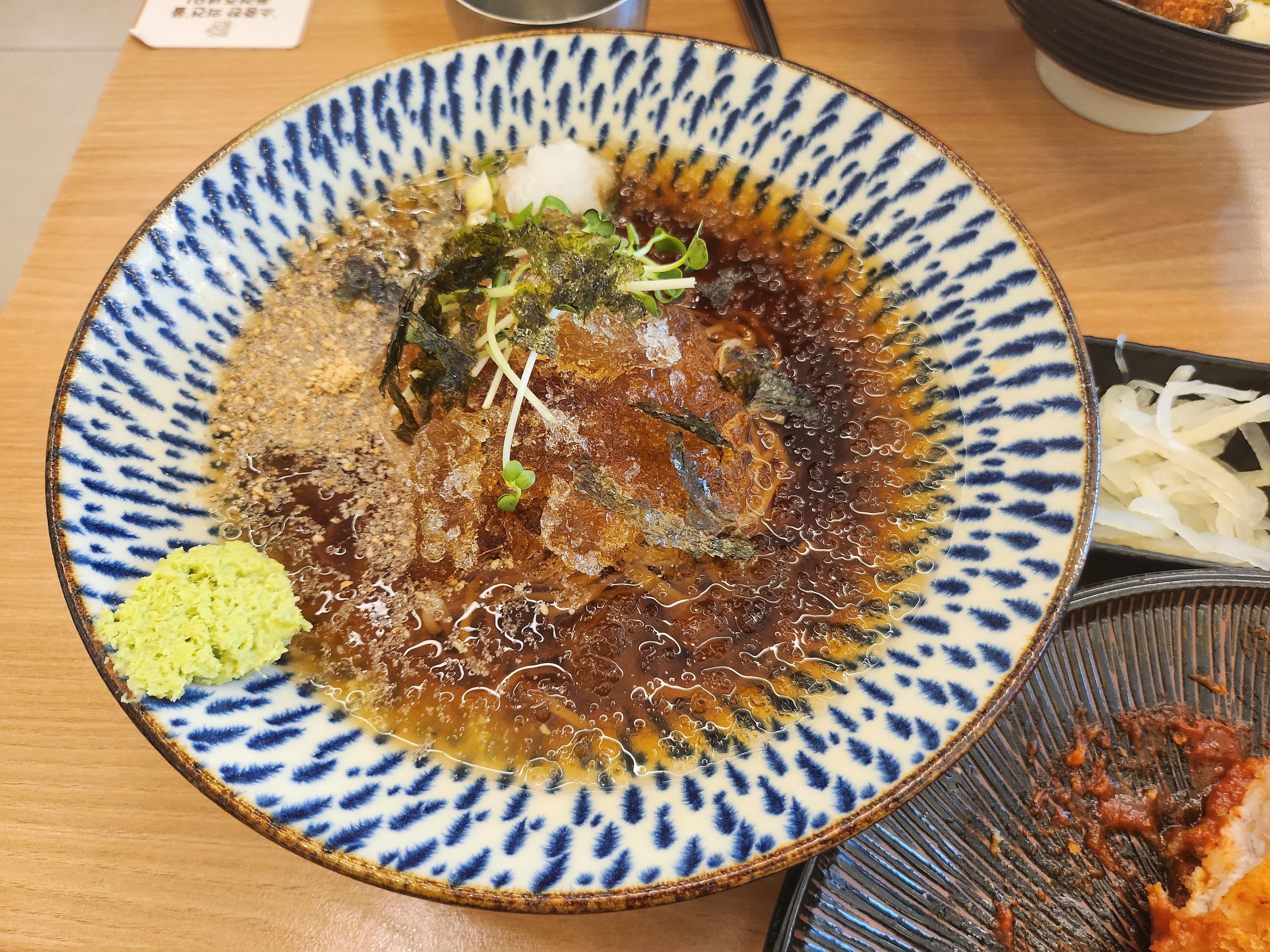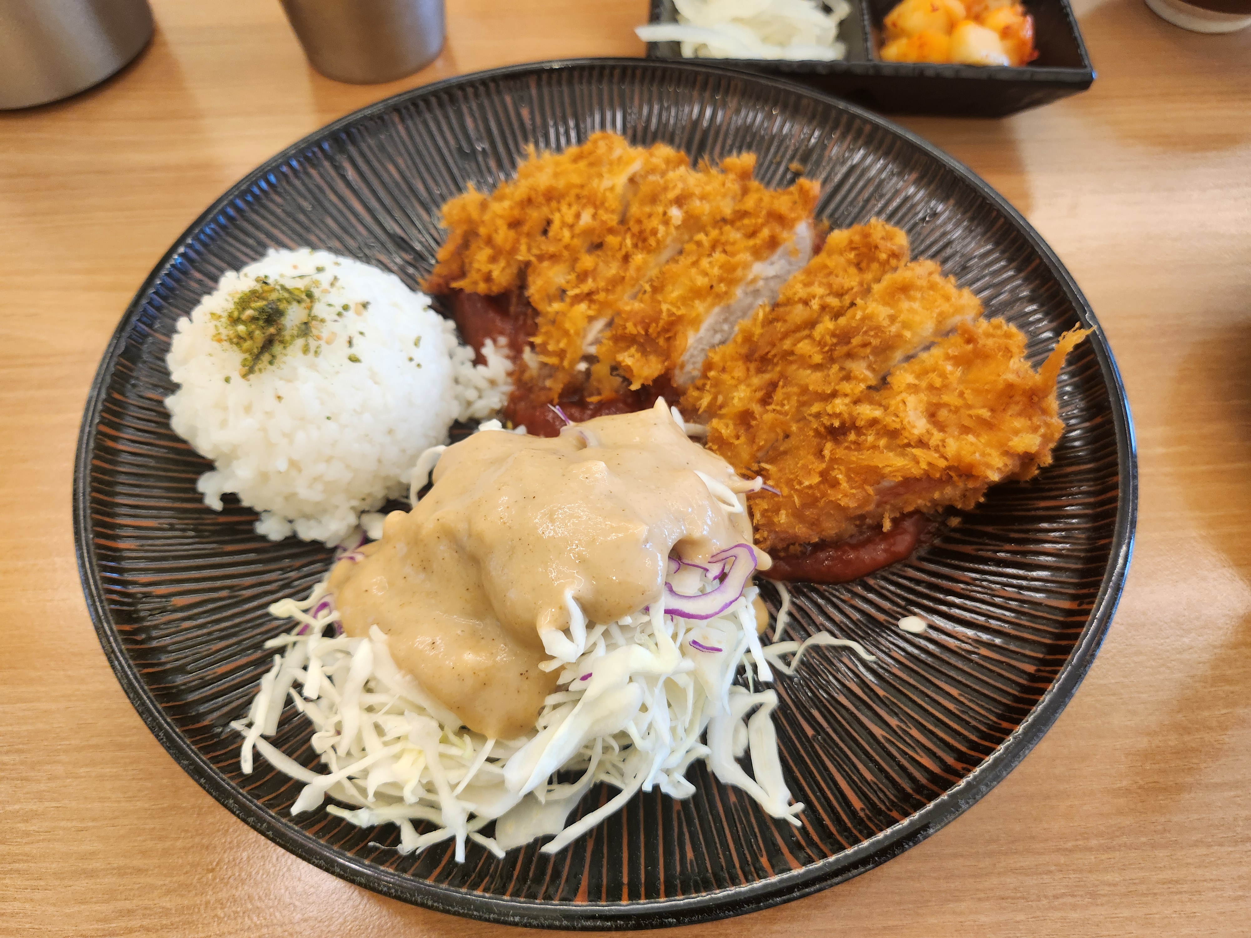 내포 수제 돈까스 맛집 '오유미당'. 매장이 깔끔하고 음식도 맛있어서 자주 찾게되는 곳이다. 이곳의 다양한 메뉴를 먹어봤는데 돈가스류, 덮밥, 소바, 쌀국수, 우동 다 맛있다. 그중에서 특히 내가 좋아하는 메뉴는 살짝 매콤한 토마토 소스가 곁들여진 돈까스이다. 이름은 토마토 돈까스. 잘 튀겨진 도톰한 돈까스를 매콤한 토마토 소스에 찍어 먹으면 정말 훌륭하다. 느끼한 맛도 잡아주고 감칠맛도 미쳤다. 아주 추천하는 메뉴이다. 토마토 돈까스 가격은 11,500원이다.