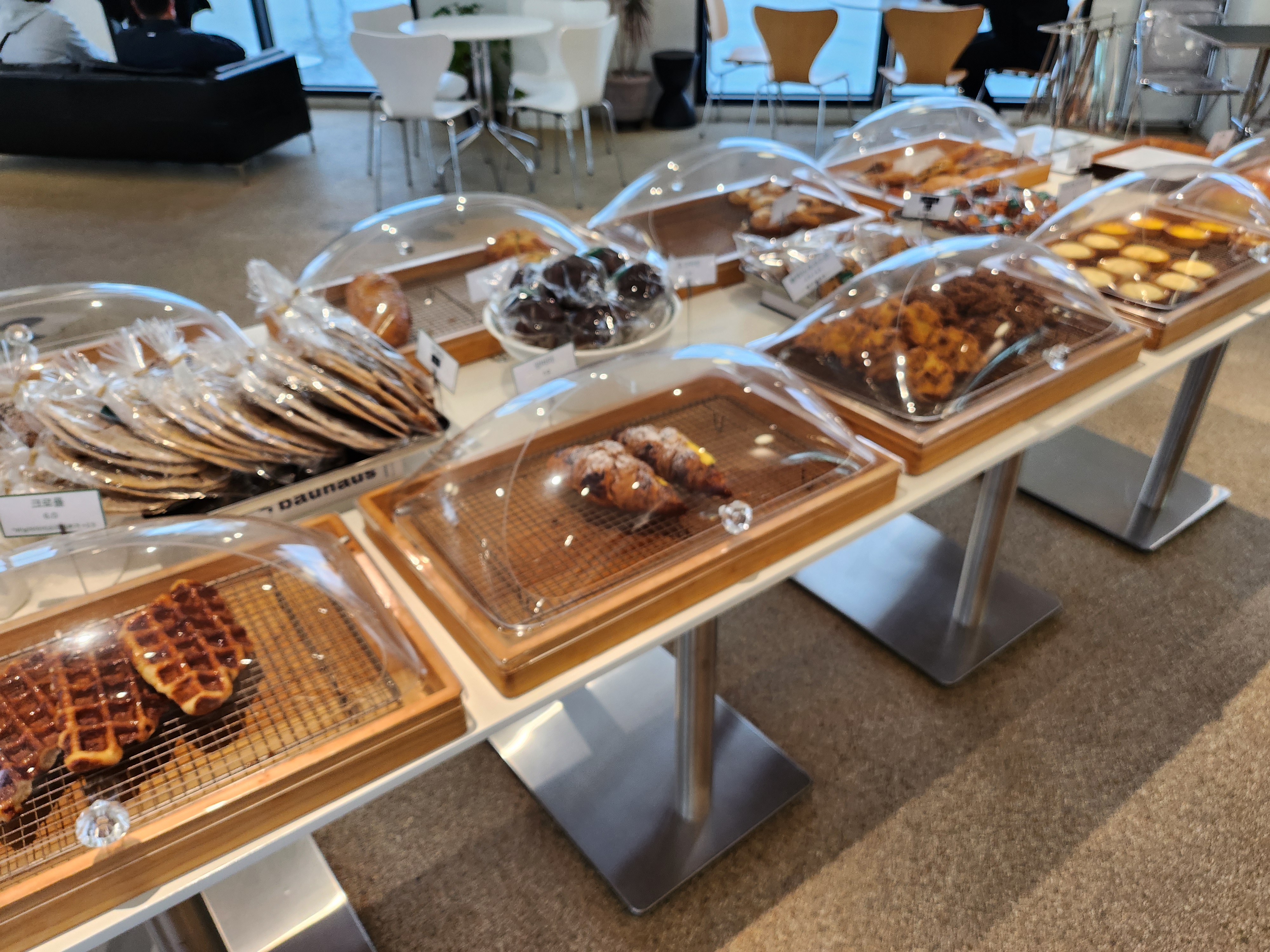 크로플, 타르트, 파이, 스콘, 소금빵, 조각 케이크 등이 있었다.