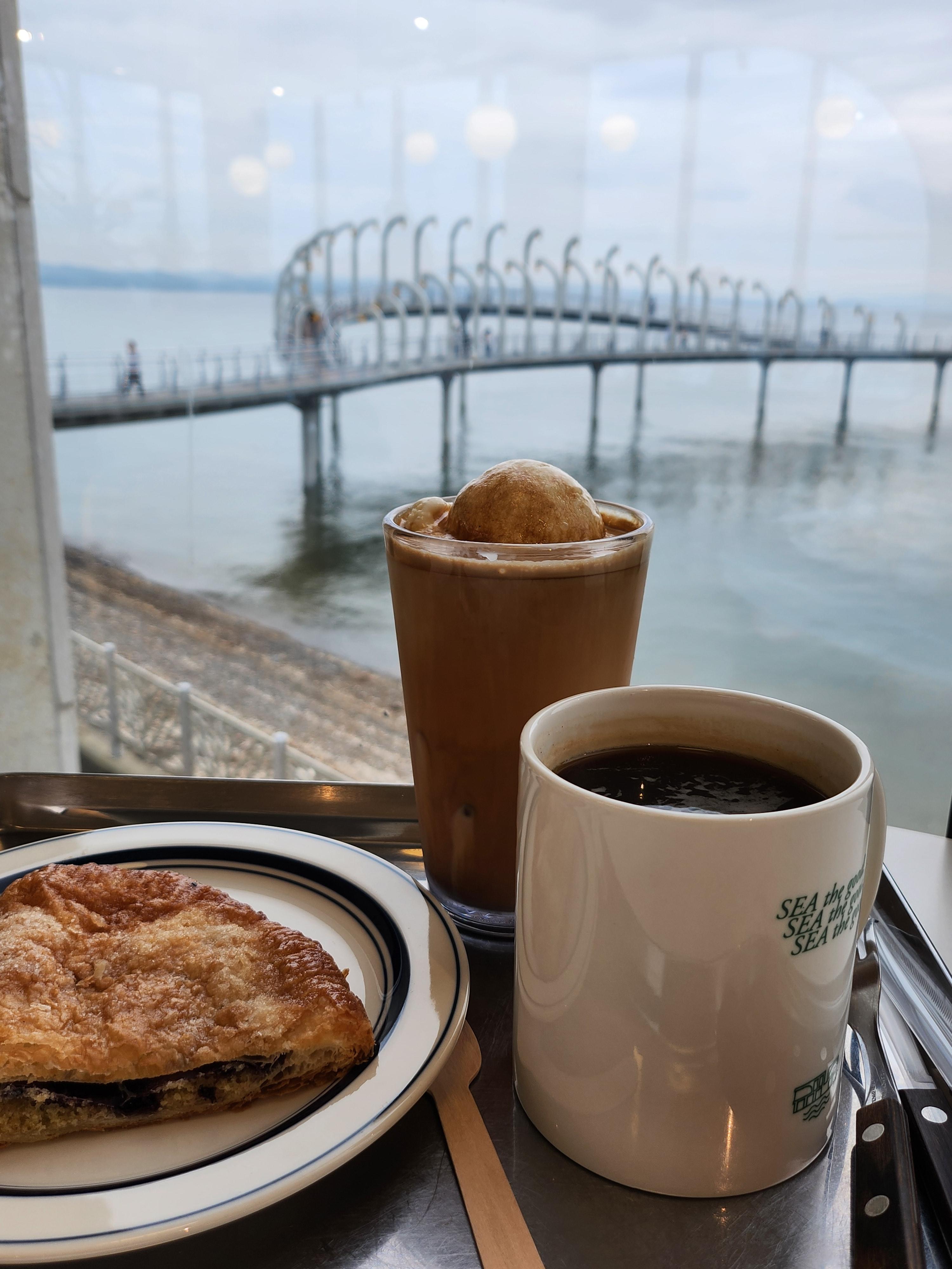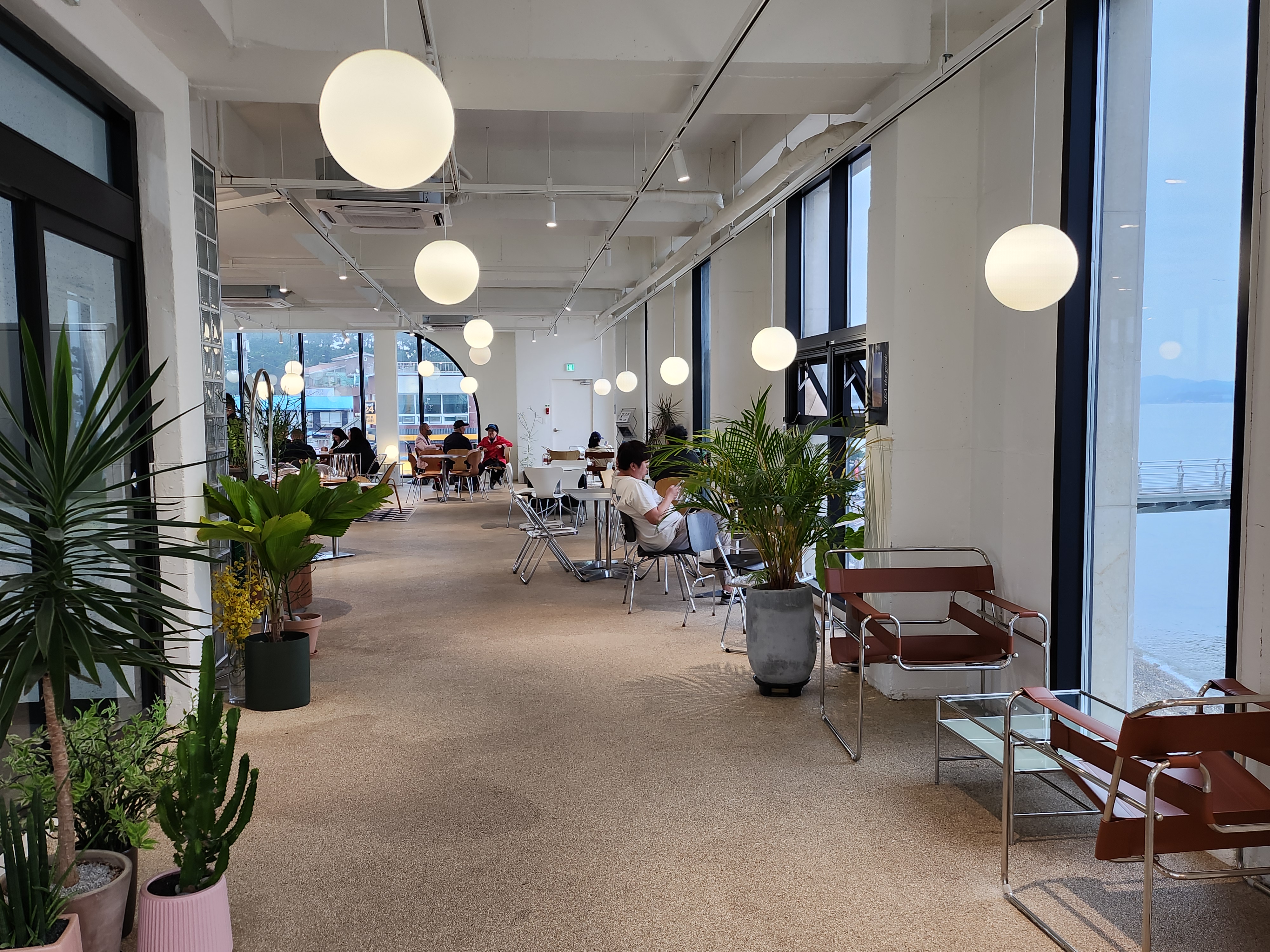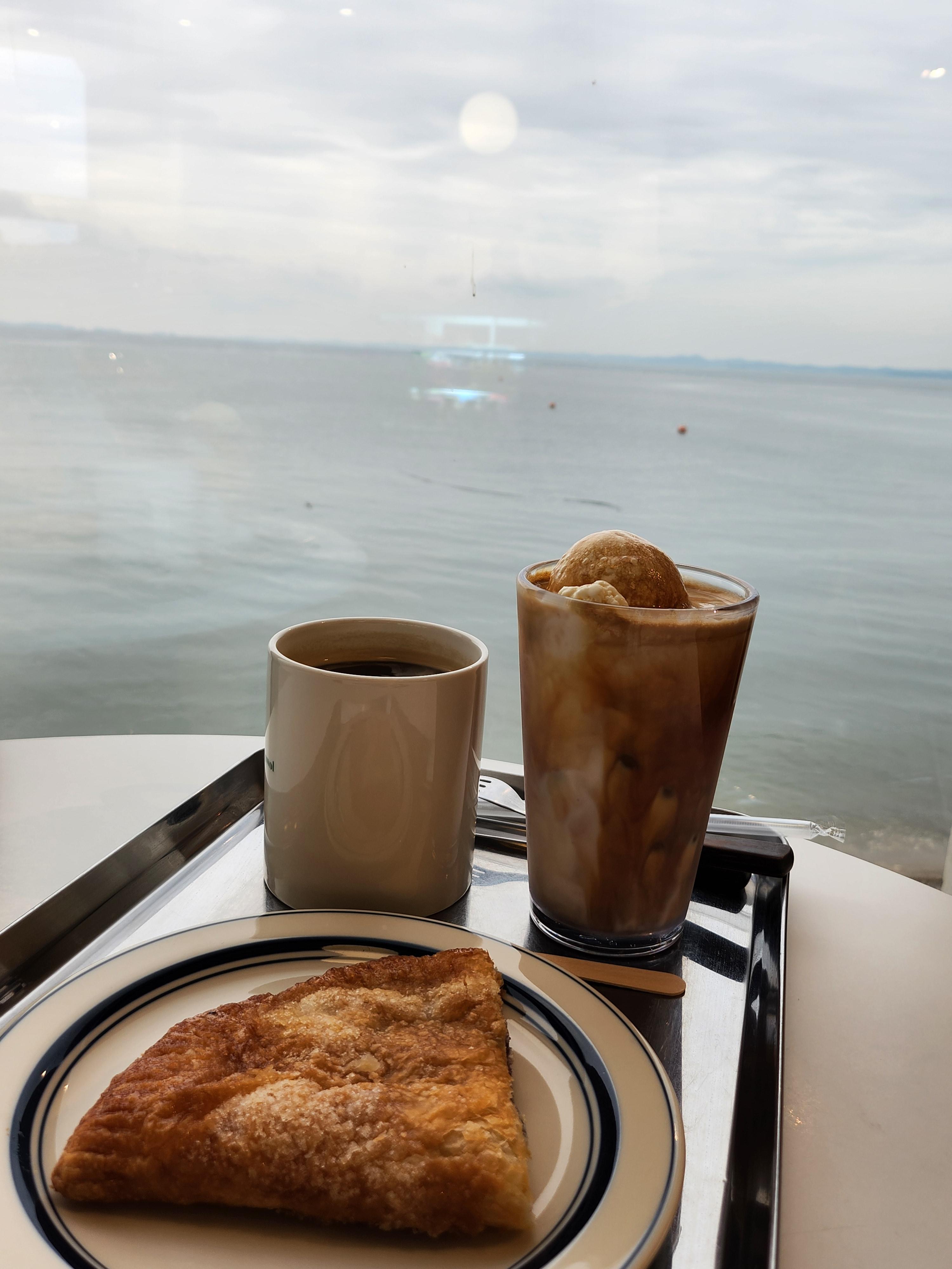 우리는 바다가 보이는 창가쪽에 자리를 잡고 앉았다. 날씨가 흐린 날이라 오션뷰가 조금 아쉬웠다.